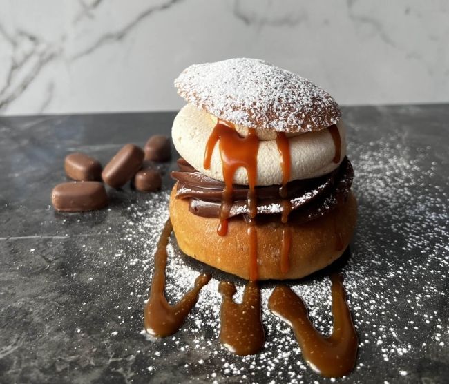 Vår goda vetebulle fyller vi med ett lager Karamelliserad Mjölkchokladtryffel.